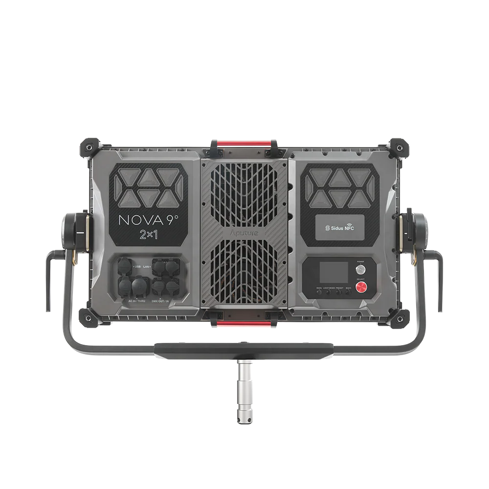 Aputure NOVA 9 2x1 este un panou LED profesional de mare putere, echipat cu motorul de culoare BLAIR, proiectat pentru productii cinematografice, televiziune, reclame si continut comercial unde precizia culorilor si consistenta luminii sunt esentiale. Cu o putere impresionanta de 1200W, NOVA 9 ofera un nivel de iluminare extrem de ridicat, mentinand in acelasi timp o distributie uniforma si controlabila a luminii pe intreaga suprafata 2x1.