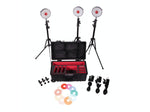 Pachetul include: 3 x Rotolight Neo 2 (inclusiv cate un kit de 4 filtre), 3 x cap cu bila, 1x kit filtre FX, 1 x geamantan personalizat, 3 x monturi hot shoe, 3 x suport lumini.