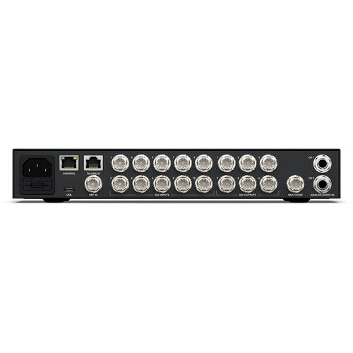 Toate modelele dispun de conectivitate 12G-SDI multi-rate, compatibila atat cu fluxuri HD, cat si 4K, permitand combinarea semnalelor in acelasi sistem. Fiecare intrare are sincronizare de frame si conversie automata a formatului, garantand tranzitii fluide intre surse.