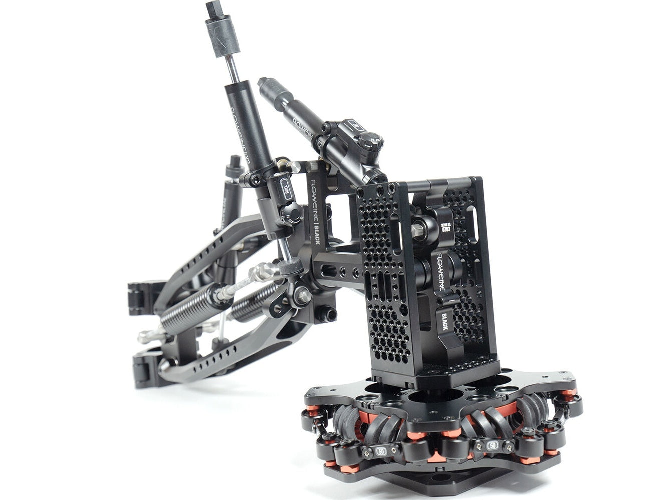 FLOWCINE Black Arm vine in doua versiuni. Black Arm Standard a fost dezvoltat pentru a functiona cu gimbal-uri si camere cu o greutate cuprinsa intre 5 si 13kg. Cea de-a doua varianta, Black Arm Complete, este dedicata celor care folosesc configuratii de camera mai mari, cu o plaja cuprinsa intre 5 si 32kg. Desigur, la nevoie, modelul Standard poate fi upgradat la Complete.