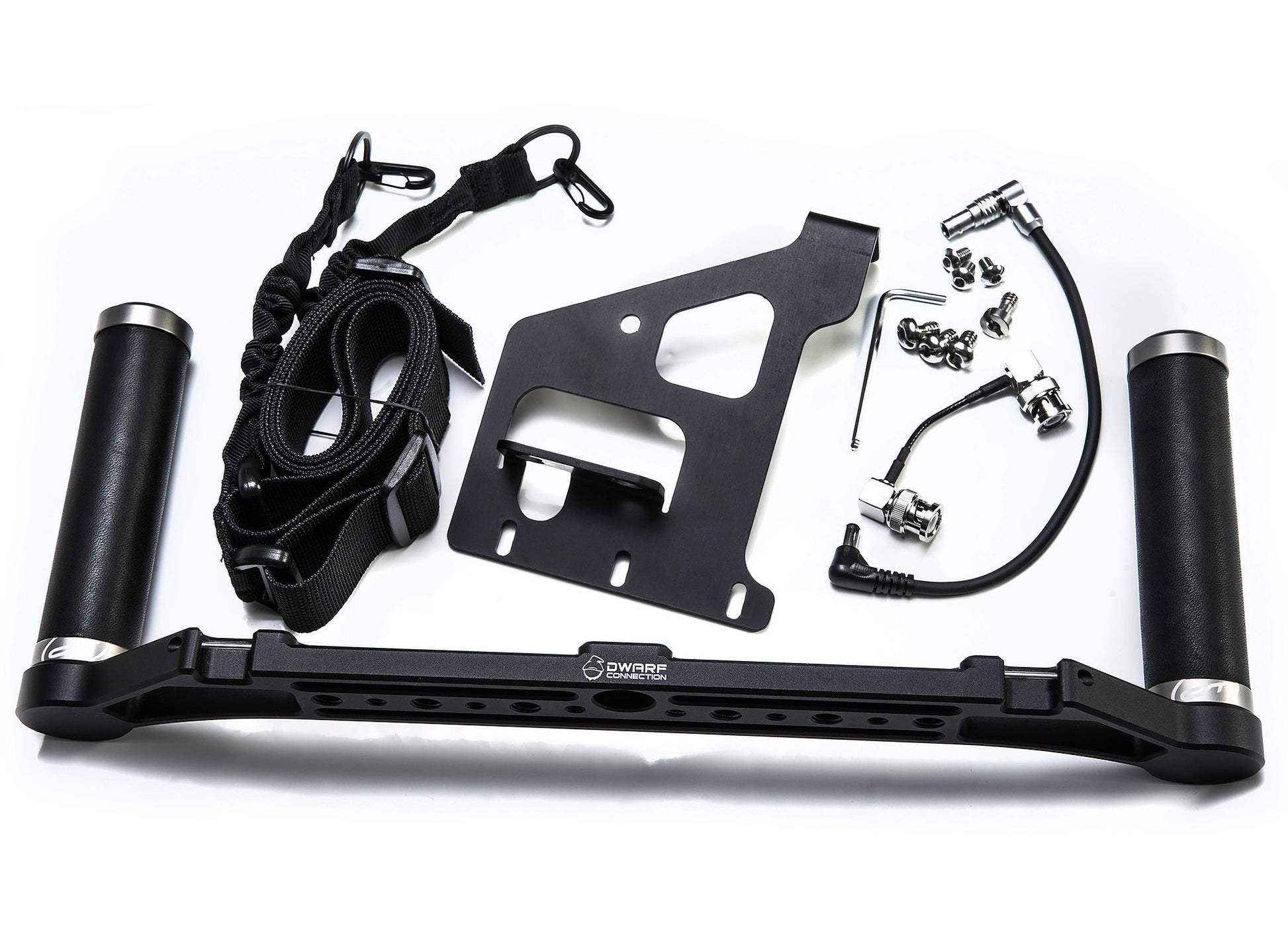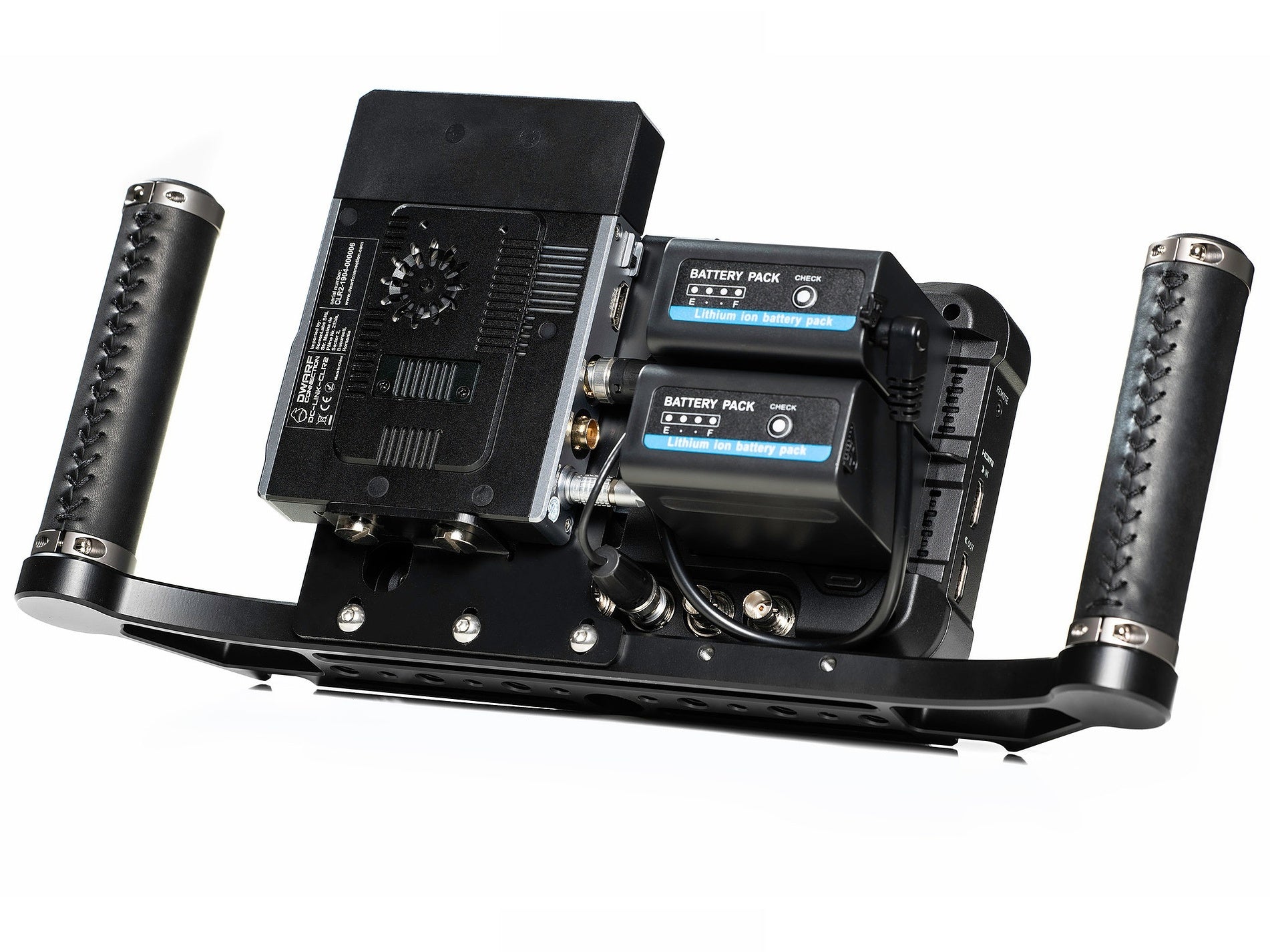 Placa din spate, cu un design creat special, se potriveste perfect tuturor receptoarelor wireless Dwarf Connection DC-LINK si monitorului Shogun 7, in timp ce cabluri personalizate sunt exact cat de lungi este necesar. DC-GO include unitatea de bază și kit-ul de montare pentru Atomos Shogun 7 și sisteme video wireless DC-LINK. Sistemul este gandit pentru a accepta simultan doua baterii tip NPF.