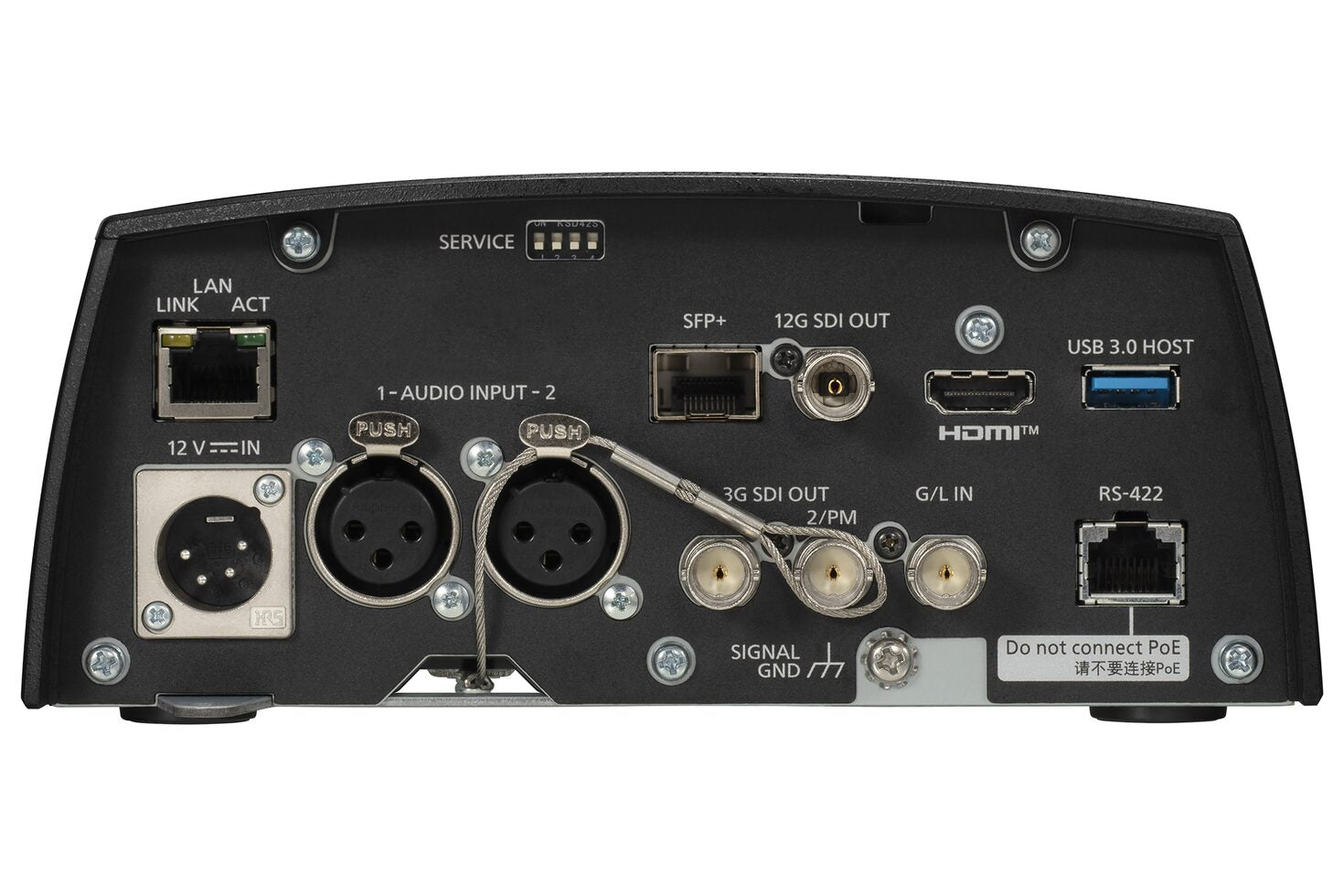- Interfete: 12G-SDI, HDMI, LAN, fibra optica, USB