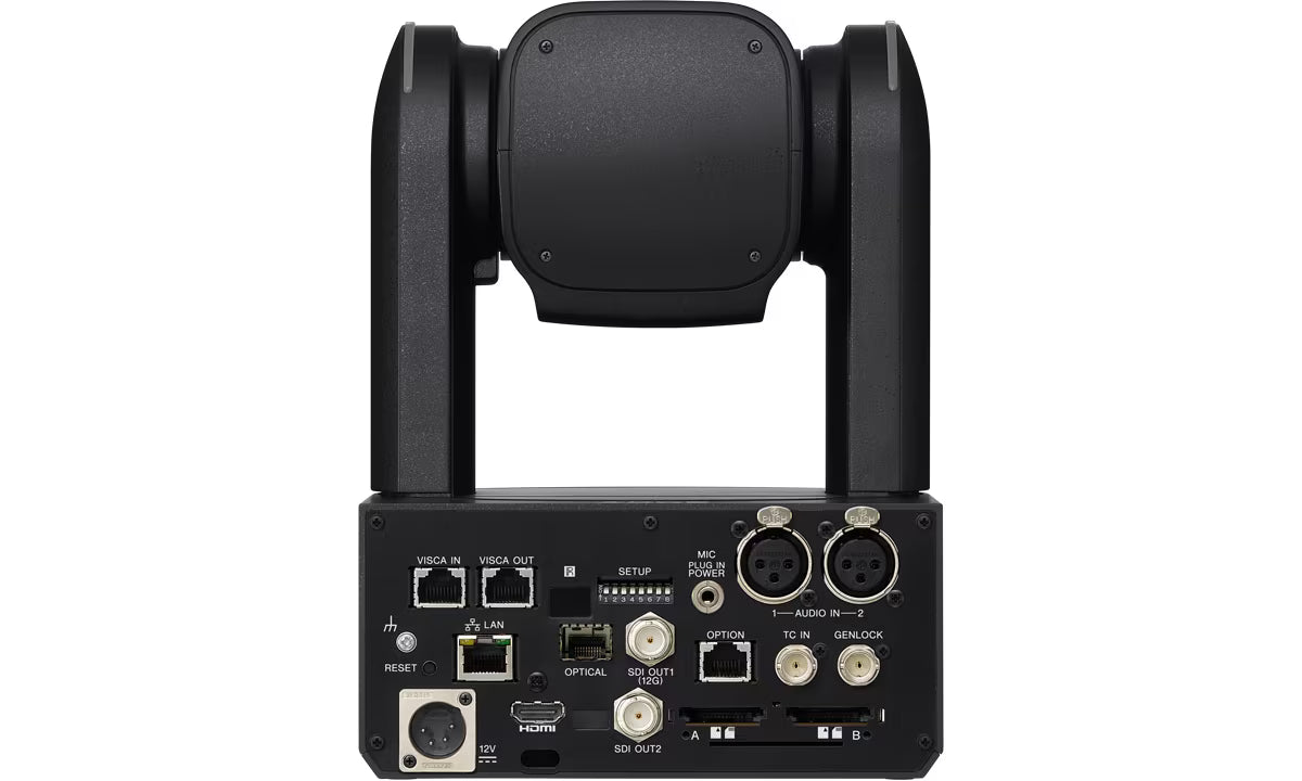 Sony BRC-AM7 oferă conectivitate bogată: ieșiri video 12G-SDI, 3G-SDI, HDMI și opțiune de fibră optică (slot SFP+). Pentru streaming și integrare IP, suportă protocoale NDI|HX, SRT, RTSP, RTMP, iar controlul poate fi realizat prin VISCA over IP sau standarde Sony de control profesionist. Camera poate fi alimentată fie prin conector XLR 4-pin, fie prin PoE++ (IEEE 802.3bt), facilitând instalările în locații variate.